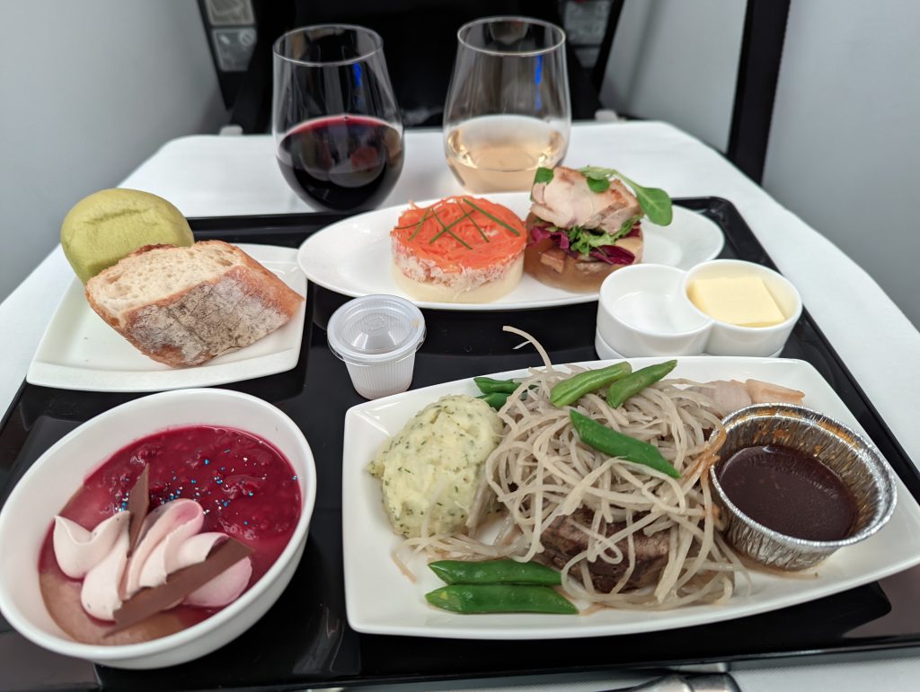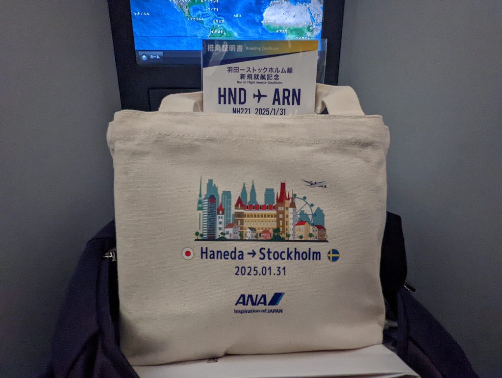 羽田からからストックホルムは北極周りで13時間半。深夜便でストックホルムには朝に着く。深夜便は食事が出ない。頼めば軽食サービスはある。しかし初便、記念品も頂き、食事が用意される。シャンパンにフォアグラ、カニとエビのゼリー寄せ、ヒレステーキ😋😋😋。全部食べた。あとは寝るだけ。