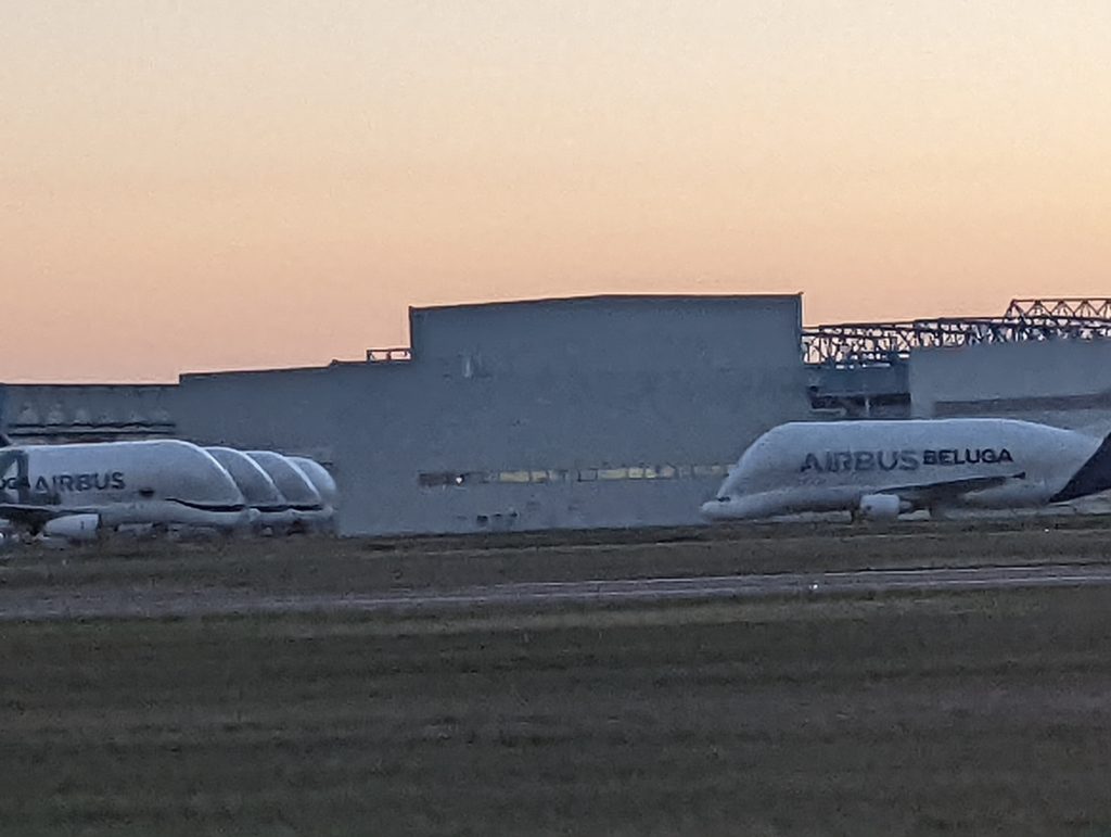 検索してみると、工場で造った飛行機を運ぶ飛行機。『エアバスベルーガ』ベルーガとはイルカの意味。よく見ると、ホント! イルカのカワイイ顔みたい。これが、造られた機体、翼、コックピットなどを載せて、世界に運ぶ。ロッキード社にもあるそう。日本では中部空港が運搬地で飛来するそう。驚きました😂!