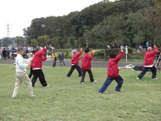今年5月に太極拳を習い始めた地域の皆さん11人で、ドキドキしながら
