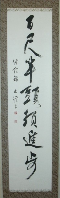 同じ職場の樋口さんの作品です。百尺竿頭のTシャツの文字がご縁で今回作品の題材となったようです。毎朝東京駅から錦糸町まで歩かれていますが、これが筆勢のエネルギー源になっているのでしょう。