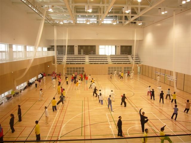 新しい総合体育館での、太極拳研修会に、続々と大勢の